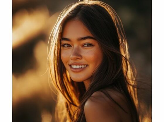 シチュエーション・静かに芯のある美しさがある女性のイラスト・笑顔・ファンタジー風・デート服